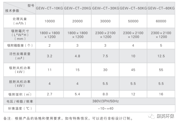 活性炭吸附+CO催化燃燒工程機參數規格表